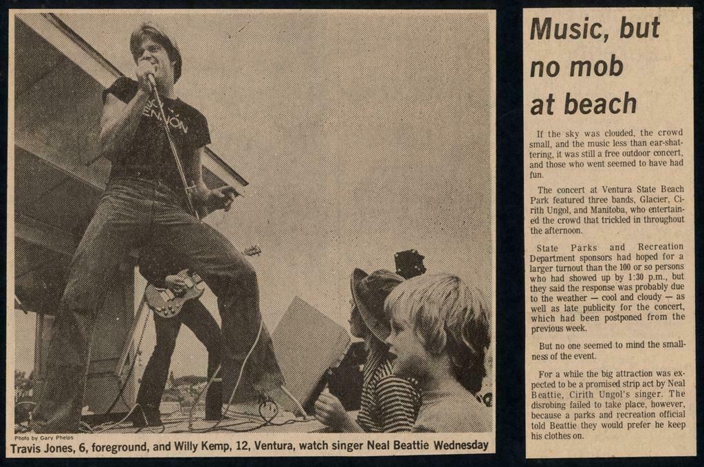 For a while the big attraction was expected to be a promised strip act by Neal Beattie, Cirith Ungol’s singer. The disrobing failed to take place, however, because a parks and recreation official told Beattie they would prefer he keep his clothes on.