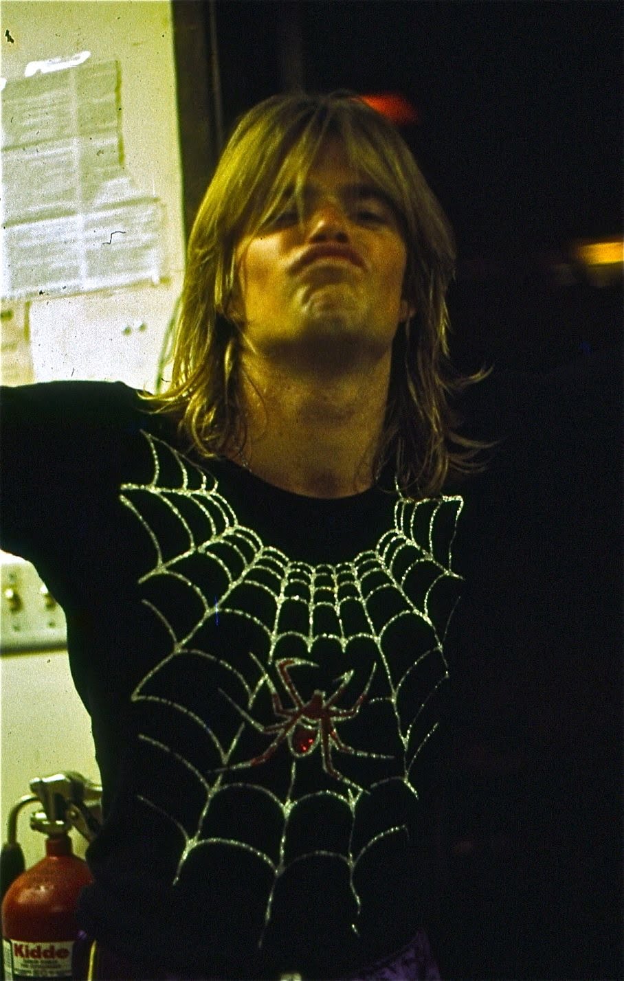 It wasn’t until 1975 that Neil Beattie (aka Terry Dactyl) became our lead singer. He was a little more glam inspired than the rest of us, but he put on a really wild live show, with black widow spider fingertip extensions to go along with our six foot wide black widow spider for “Shelob’s Lair”. Even though he was a great performer, Neilโs voice didnโt quite fit in with our vision, and we parted ways after about a year.