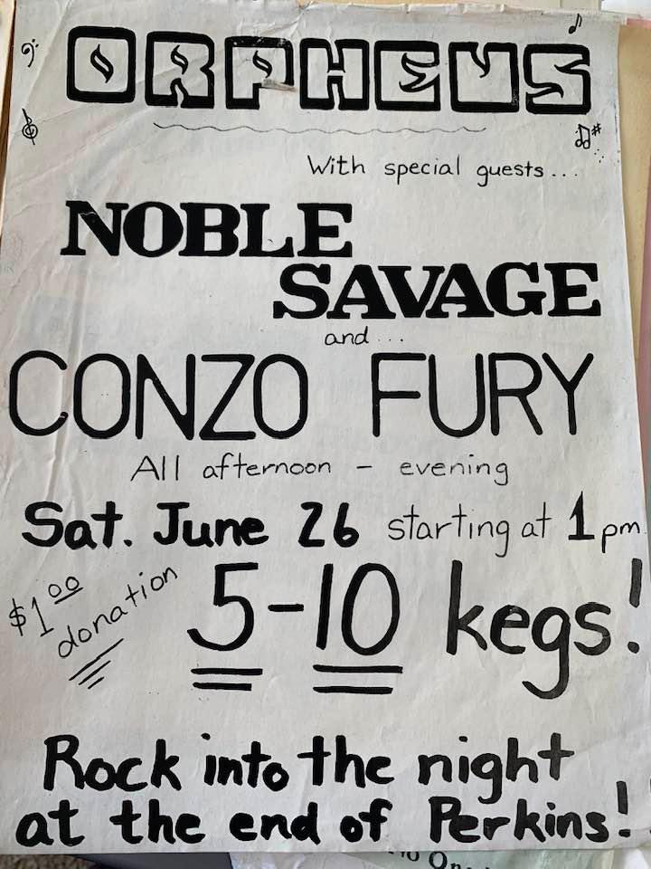 - Sat 26 Jun 1982 – live Orpheus, Noble Savage and Conzo Fury, no CU. See picture on Noble Savage.