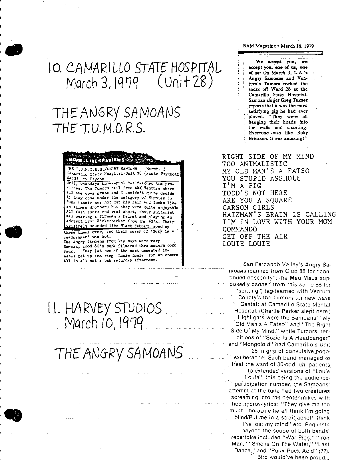 CAMARILLO State Hospital Unit 28: The Angrie Samouns’ first top billing! “T.U.M.O.R.S.” featured guitarist P.J. Galligan, who will soon become the Samoan’s new first guitarist.