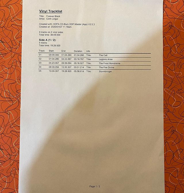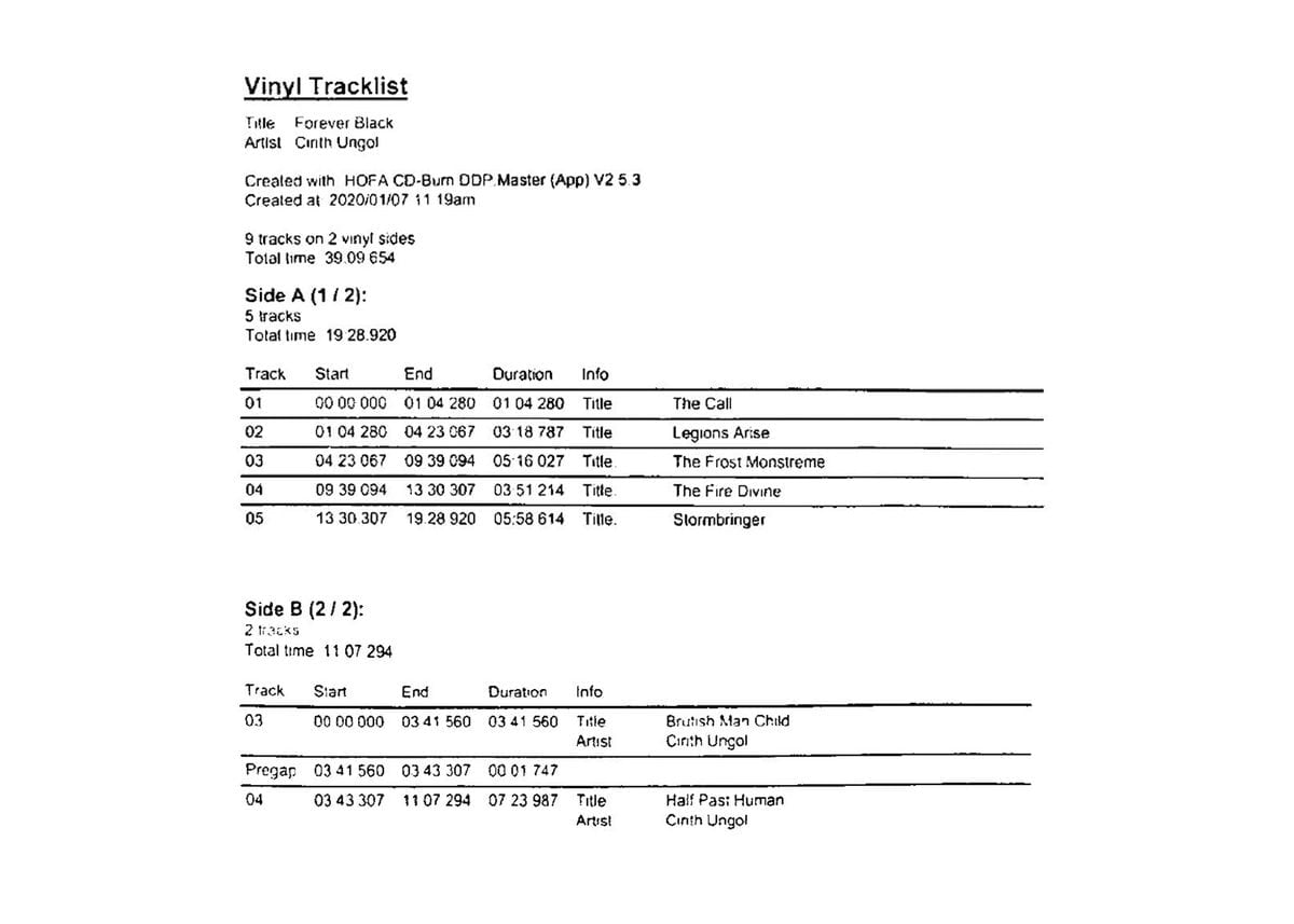 ID 25829 โบ๏ธ Edition Forever Black Test Pressing Vinyl ๐ŸŒŽ Country United States of America (USA) (US) ๐Ÿ’ฟ RecordForever Black โš”๏ธ Band Cirith UngolRelease date Fri 24 Apr 2020 • Published Fri 04 Mar 2022 • Release label (test pressing)