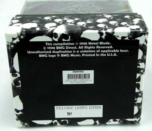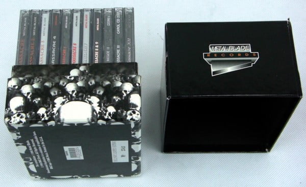 Special box set, limited and numbered, with 11 Metal Massacre discs, from Volume I to Volume XII. All CDs have sequential numbers marked (207373-1 to 207373-11). In addition, the CDs have similar catalog numbers beginning with 3984-14041-2, except for CD 10 (CDZORRO 4) and CD 11 (CAROL 2207), and CD 12, 3984-140482-2.