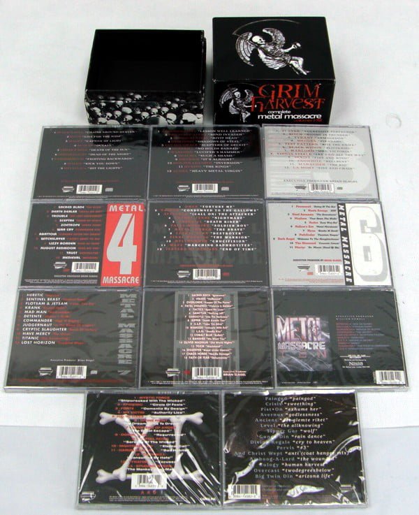 ID 6205 โบ๏ธ Edition Grim Harvest: Complete Metal Massacre Volumes I-XII ๐ŸŒŽ Country United States of America (USA) (US) ๐Ÿ’ฟ RecordMetal Massacre 1 โš”๏ธ Band Various artistsRelease date Mon 14 Jun 1982 • Published (unknown date and month) 1998 • Release label Metal Blade Records • Release number D207373