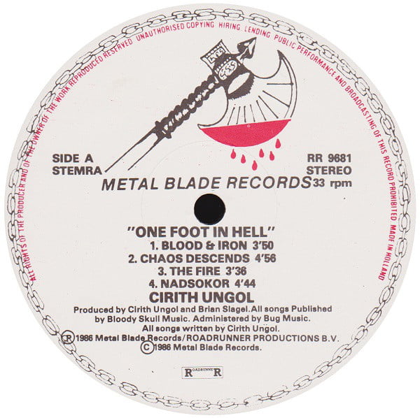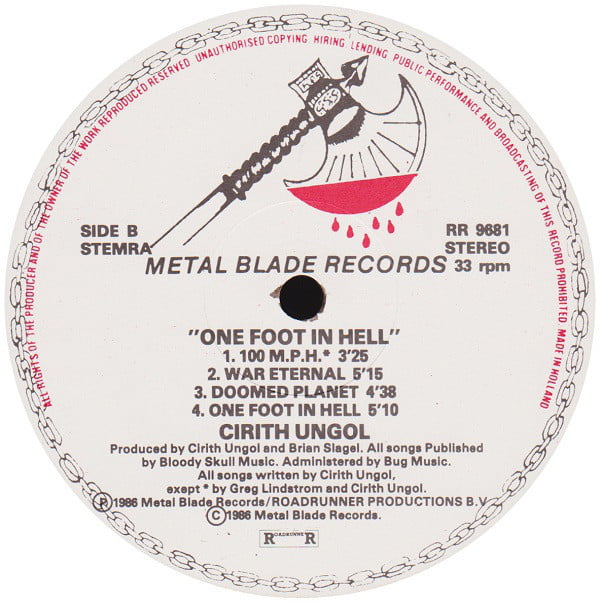 โ 1986 Metal Blade Records / Roadrunner Productions B.V. (on label).