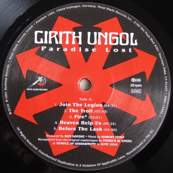 ID 3883 โบ๏ธ Edition LP: MBR 180gram Black Vinyl ๐ŸŒŽ Country United States of America (USA) (US) ๐Ÿ’ฟ RecordParadise Lost โš”๏ธ Band Cirith UngolRelease date Fri 23 Aug 1991 • Published Fri 07 Oct 2016 • Release label Metal Blade Records • Release number 3984-15462-1 / CA 91403