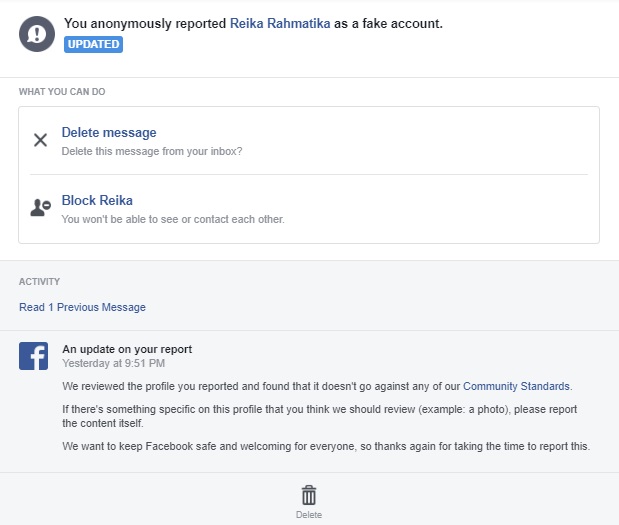 Yes, it was deleted on Facebook .
