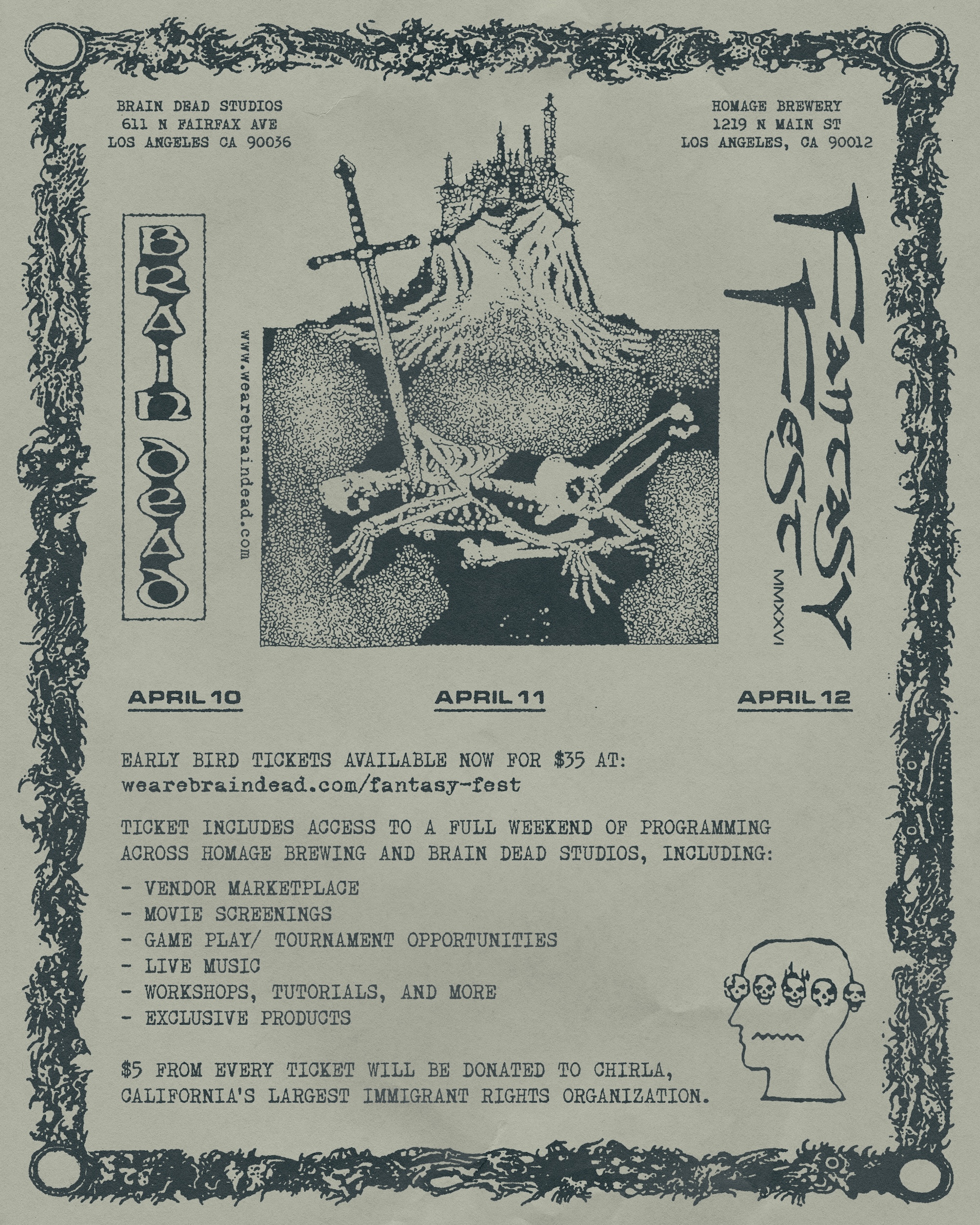 Get your early bird access ticket to a full weekend of programming across Homage Brewing and Brain Dead Studios, including: