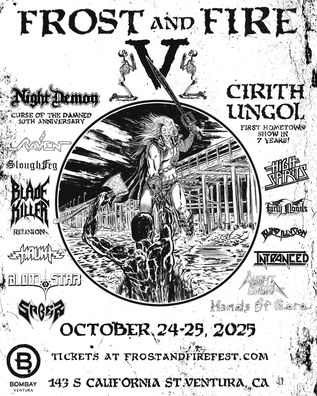 Now on to the good stuff!!!!! Frost and Fire V will take place at Bombay in Ventura, CA. Show is 21+. There are two stages with no bands playing simultaneously!