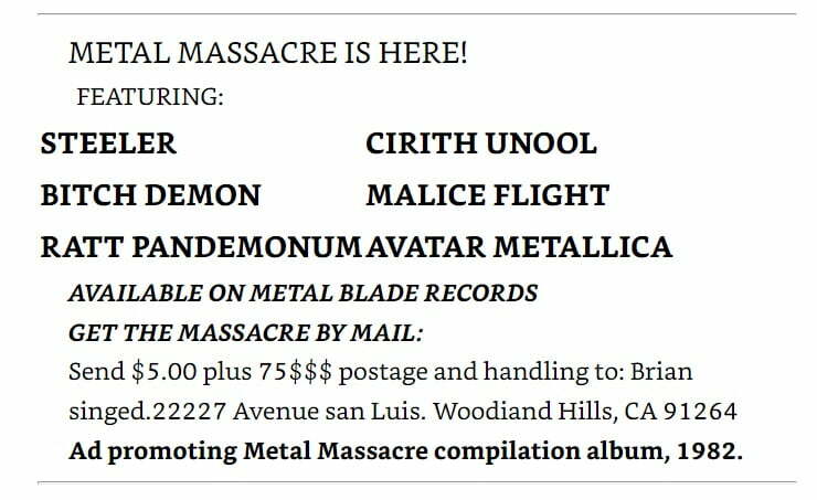 - Misspelled Cirith Unool. From Metallica Unbound: The Unofficial Biography By K.J. Doughton. Promotion was Metal Massacre 1