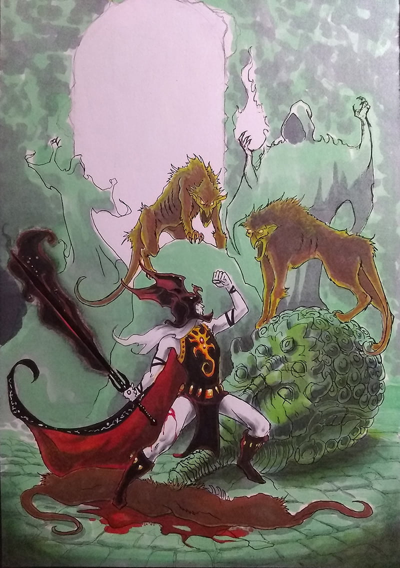 - Final day to back Urish’s Hoard- The Guide to Elric Collectibles. I’m sharing a color study, Mark A. W. Jackson sent before painting the final cover, Over 140 pages including interviews with Michael Moorcock, Michael Whelan, Robert Gould, P. Craig Russell, Robert Garven of Ciruth Ungol, Robb Weir of Tygers of Pan Tang, Alan Davey of Hawkwind and Hawkestrel, with an article by Richard Watts (author of Stormbringer RPG supplements) and new (and old) artwork by World of Darkness games Mark A. W. Jackson, Urish’s Hoard is a must for any fan of the original dark fantasy anti-hero Elric of Melnibonรฉ! kickstarter Those ordering through the Kickstarter get the Kickstater exclusive bookmark as well. Please check it out!