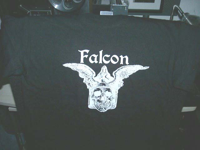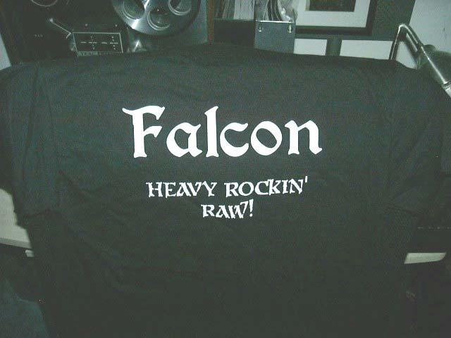 Official Falcon T-shirts and long sleeves. Falcon black logo shirt on front, “Heavy Rockin’ Raw!” on back.