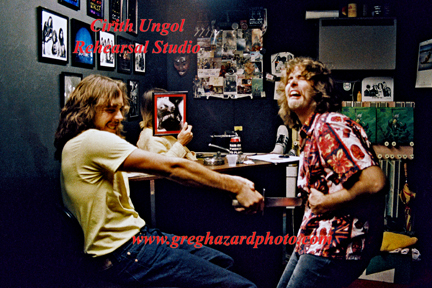 - Signing albums at Enigma Records. Pat and Flint are in the foreground. Rob and Tim are in background. All three records is blue background on the cover and all is on the Enigma Records:Cirith Ungol – King of the Dead (E-1089), Stryper – The Yellow and Black Attack (E-1064) and 45 Grave – School’s Out 12″ (E-1039).