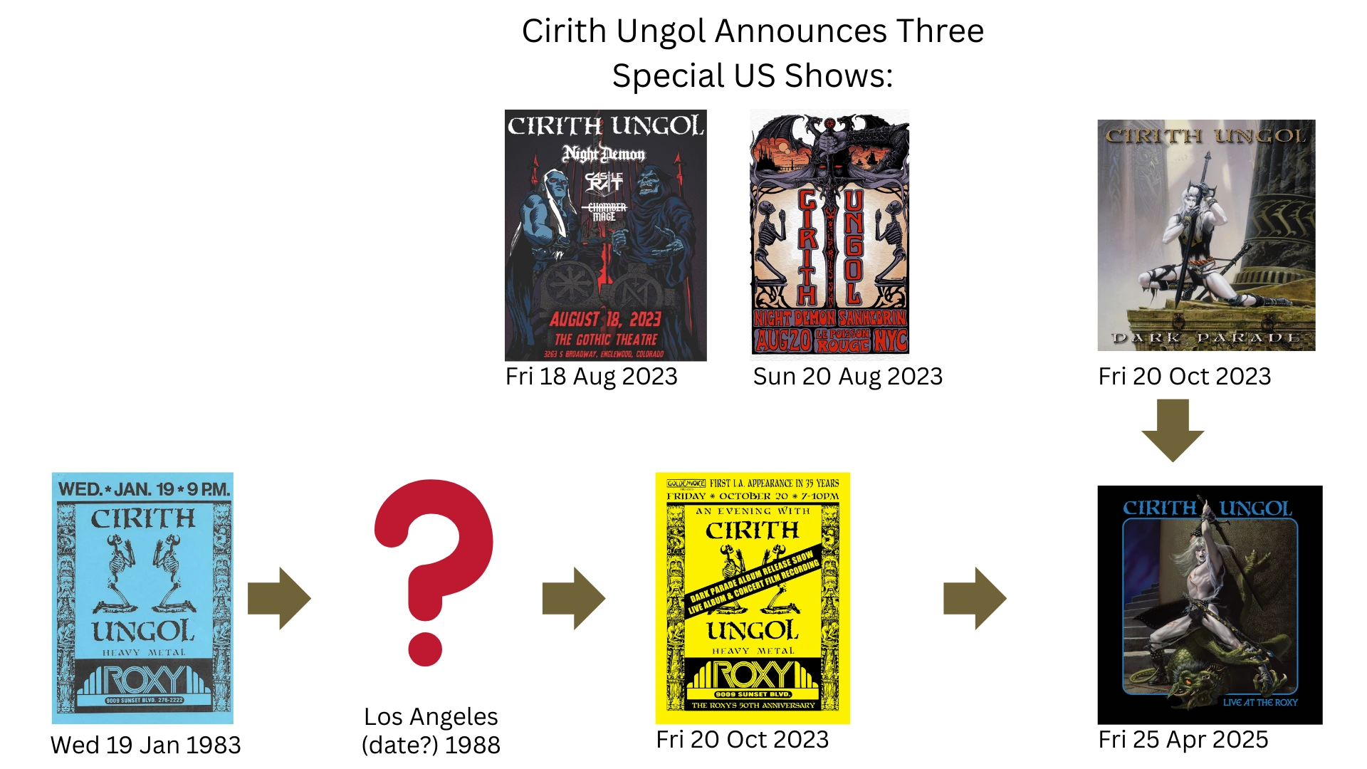 - Roxy Sunset Strip “Cirith Ungol’s first The Roxy Theatre show since 1983!! π€―”
