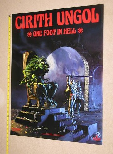 I was the original and only drummer and co-founder of the Heavy Metal band Cirith Ungol. There were posters made for our 3rd album "One Foot in Hell" which was released on Metal Blade Records in 1986. They depicted the amazing illustration of Michael Whelan, which also appeared on the Michael Moorcock book entitled, "The Vanishing Tower". All of them were folded in quarters and sent out with the records for in store displays. However a few example were left unfolded. Here is a perfect example of one of those very rare posters. It measures 28.5 x 22" and is in PERFECT CONDITION! Hard times makes me offer the rarest piece of Cirith Ungol memorabilia and my most of my collection. Although I never had any success I am hoping that some of our fans has been more successful and can acquire this piece of memorabilia of rock and Heavy Metal history. We were the first band in LA to release out own record independently. Thanks for looking. I will answer any questions about this item, and sign if requested.